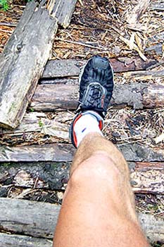 Brädorna som är utlagda vid blötområderna kan bli hala vid regn.